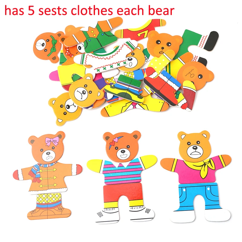 Related Product for Wooden Puzzle Set Baby Educational Toys Puzzles Kids Children's Wooden Toy Bear Changing Clothes