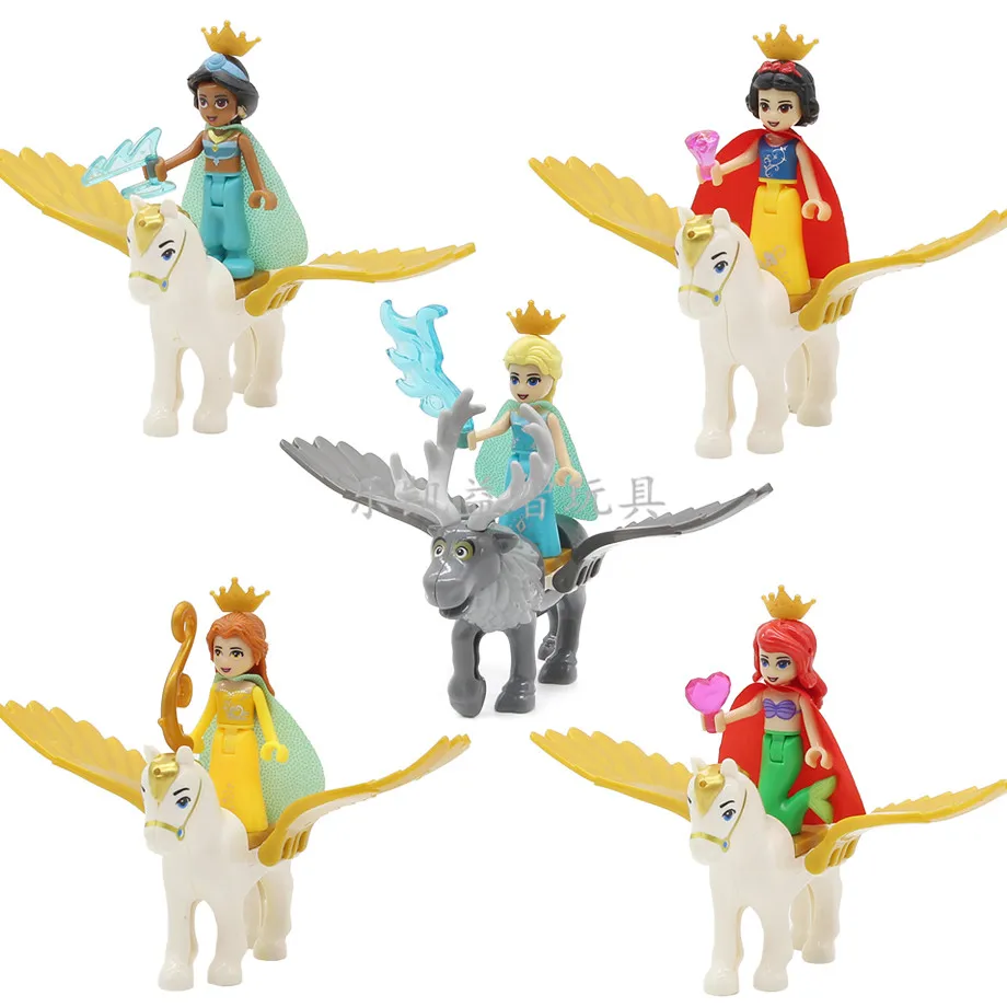 23 Style Friends Princess Figures Crystal Castle Cinderella White Snow Elsa Ice Castle Anna Building Blocks Toys for Girls Gift