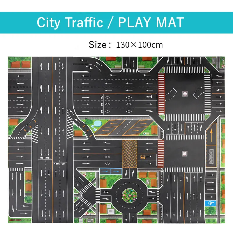.image of 83*57cm/130*100CM Large City Traffic Car Park Play Mat Waterproof Non-woven Kids Playmat Pull Back